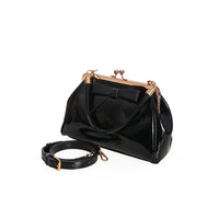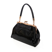 PATENT HANDBAG WITH BOW DETAIL AND ROSE GOLD COLOUR METAL CLASP