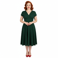 - This timeless tea swing dress is now crafted in a stunning forest green stretch scuba crepe fabric, made in the UK. Featuring a refined crossover bust and a waist panel for a flattering silhouette, it is ideal for bridesmaids and a variety of special occasions. The non-shedding glitter detail adds subtle sparkle, elevating the classic design with elegance and charm.