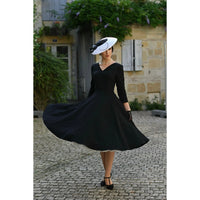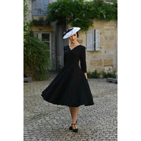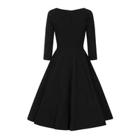 Black Embossed 3/4 Sleeve Vintage Swing Dress