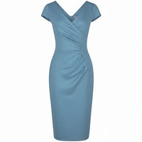 Summer Blue Cap Sleeve Crossover Top Bodycon Wiggle Pencil Dress