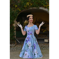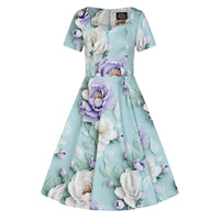 Embrace timeless elegance with this enchanting floral dress, where vintage-inspired design meets contemporary comfort. The sweetheart neckline and short sleeves frame the bodice beautifully, whilst structured panel seams create a refined silhouette that flows into a generous swing skirt—a nod to classic 1950s glamour. Painted florals in lavender, ivory, and soft green dance across a serene seafoam-mint base, evoking the romance of a spring garden. Crafted from quality cotton, this piece transitions effortlessly from garden parties to afternoon gatherings, offering the perfect balance of nostalgic charm and wearable sophistication for those who appreciate understated luxury.