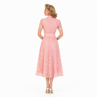 Elegant, timeless and beautifully feminine, this gorgeous pink lace midi dress is the perfect blend of vintage charm and modern sophistication. Designed in a flattering 1950s inspired shirt dress silhouette, it features delicate all-over floral lace, a structured collar neckline and a full button-through front for a polished finish.