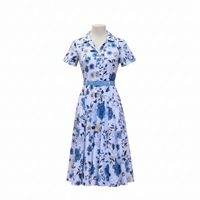 A masterclass in vintage-inspired design, this cotton tea dress captures the essence of 1950s elegance with contemporary refinement. The tailored shirt bodice features a pointed collar and button placket, anchored by a cinching belt that defines the waist and creates a flattering hourglass silhouette. Delicate cap sleeves offer modest coverage, whilst the skirt cascades into a generous swing cut—ideal for movement and comfort. The botanical print showcases sapphire roses, charcoal foliage, and warm taupe tones against a creamy ivory ground, lending understated sophistication to every wear. Crafted from breathable cotton, this dress transitions seamlessly from afternoon engagements to evening occasions, embodying timeless femininity with effortless poise.