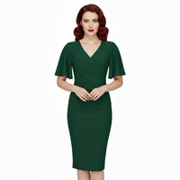Forest Green Butterfly Sleeve Slinky Cocktail Wiggle Dress
