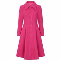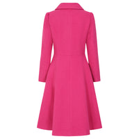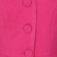 Introducing our latest autumn/winter highlight: a vibrant hot pink swing coat designed to turn heads. Featuring an elegant, feminine silhouette with a pointed collar and oversized fabric buttons, this coat combines classic style with modern flair. Crafted from a structured yet soft fabric blend that maintains its shape without stretching, its vivid pink shade adds a refreshing pop to your cold-weather collection. Embrace warmth and sophistication with this chic and lively outerwear essential.