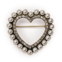 My story.... Give me to someone you love and who loves pearl jewellery and the classy things in life. A beautiful heart shaped pearl and diamante encrusted brooch that they can wear next to their heart and remember you everyday. Stunning and simple this is a piece to be worn over and over again 1950s  More about me... British Design Glass Pearl Diamante Stones Length: 4cm Width: 4cm