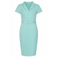 Mint Green Office Work Cap Sleeve 1940s Wiggle Dress With Belt