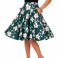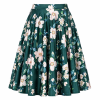 Vintage Style Green Floral Swing Skirt – 1950s A-Line Full Skirt with High Waist
