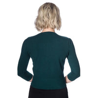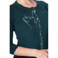 Forest Green 3/4 Sleeve Kitten Cat Embroidered Crop Cardigan