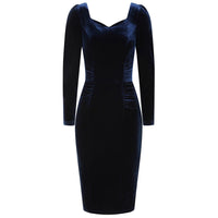 Navy Velvet Long Sleeve Sweetheart Wiggle Dress