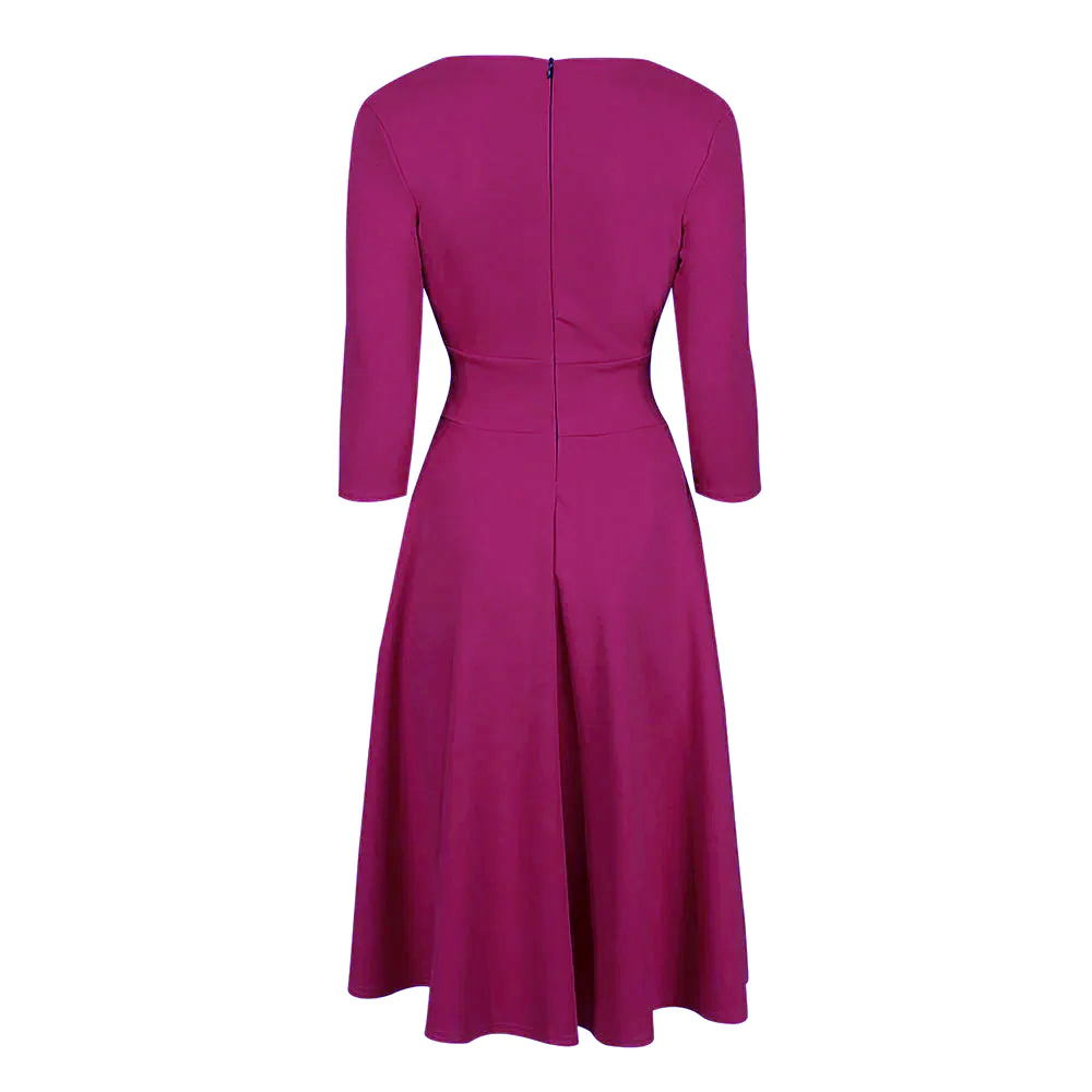 Magenta Crossover Top 3/4 Sleeve A Line 50s Tea Swing Dress