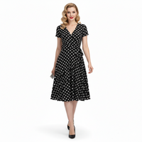 - Elevate your summer wardrobe with this striking black polka dot midi dress, crafted right here in the UK. The refined cap sleeve silhouette pairs beautifully with a flattering fit-and-flare cut that skims the body gracefully. A sophisticated crossover bust detail adds visual interest whilst the slinky fabric drapes elegantly. Perfect for creating an effortlessly chic look that feels both timeless and contemporary.