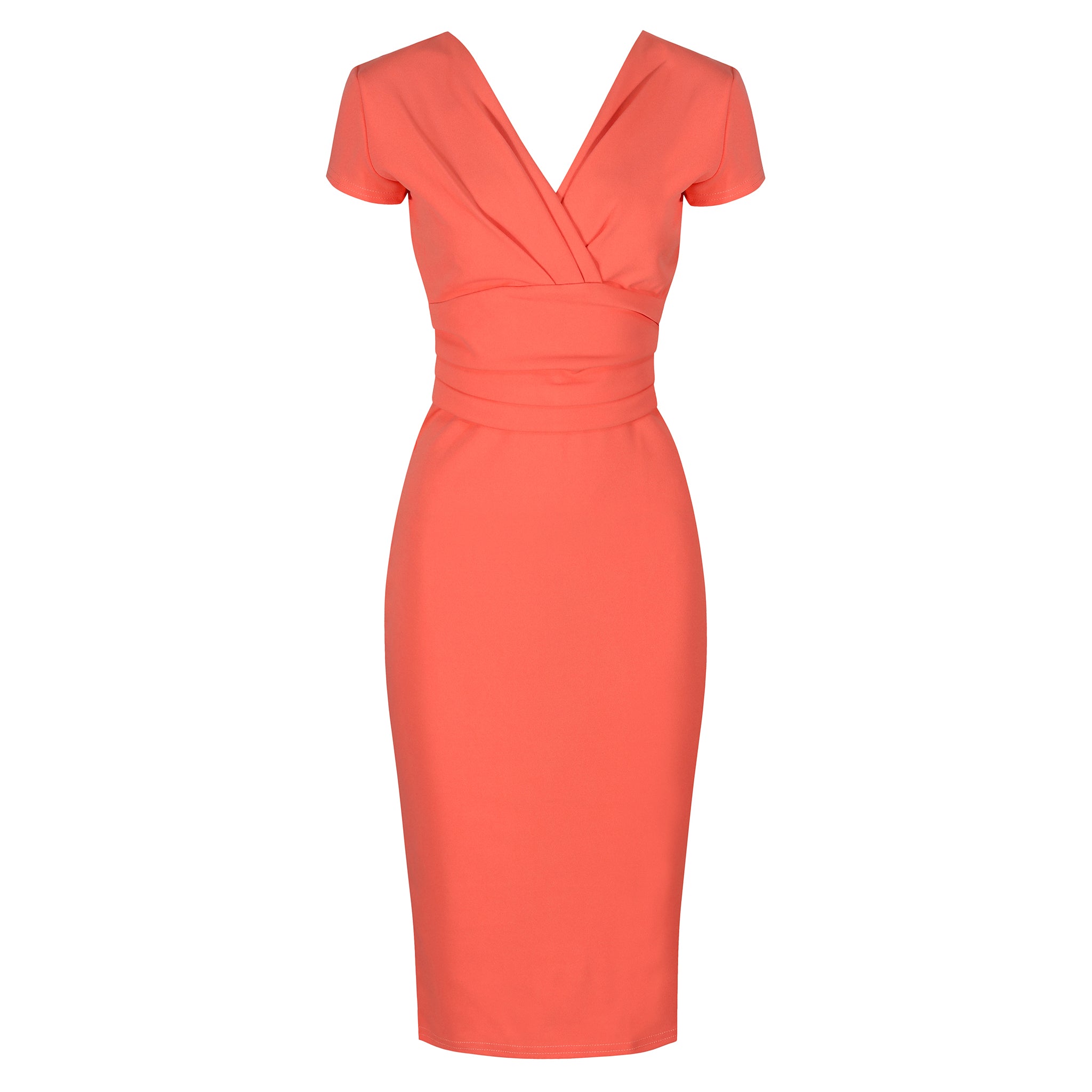 - Stunning Coral Hollywood Glamour Bodycon Pencil Dress