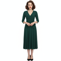 Forest Green 3/4 Sleeve Wrap Top Vintage Swing Dress