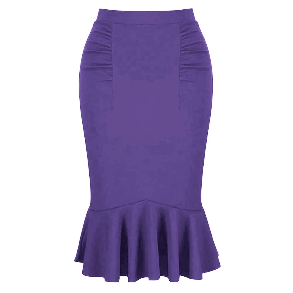 Lilac Peplum Hem Bodycon Stretch Pencil Skirt