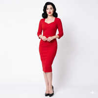 Red 1940's Vintage 3/4 Sleeve Bodycon Pencil Dress